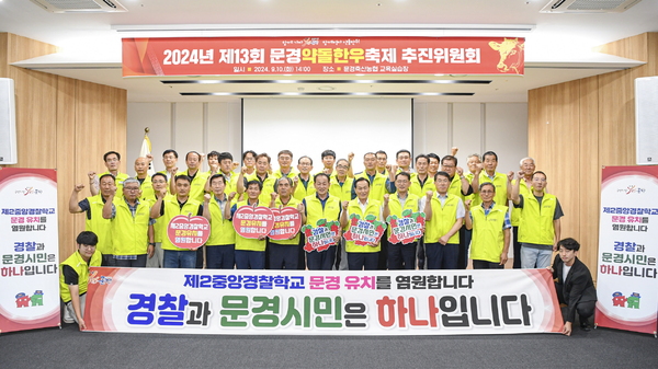 | ▲ 문경약돌한우축제추진위원회 참가자들이 제2중앙경찰학교 문경 유치를 기원했다. 문경시 제공 | ||