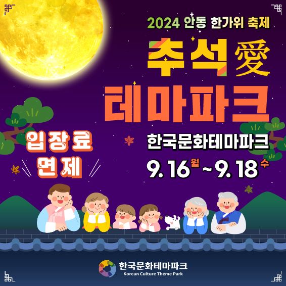 행사가 진행되는 3일간 테마파크를 찾는 모든 방문객의 입장료가 면제되며 천연염색 체험, 떡메치기 체험, 보름달에 소원 쓰기, 가족대항전 윷놀이대회, 윷점 운세 보기 등 추석 연휴 분위기를 만끽할 수 있는 다양한 체험 프로그램이 준비돼 있다.