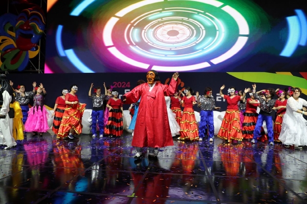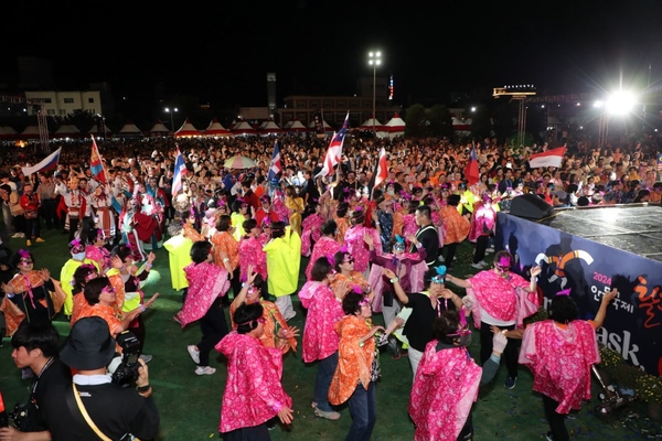 | ▲ 2024 안동국제탈춤페스티벌이 9월 27일 저녁 사상 최대, 최다 외국 공연단과 국내 공연단의 콜라보로 시작하는 대동난장 등을 통해 구름 인파의 참여자 중심으로 화려한 개막을 알렸다. 안동시 제공 | ||