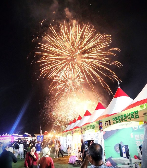 | ▲ 2024 안동국제탈춤페스티벌이 9월 27일 저녁 사상 최대, 최다 외국 공연단과 국내 공연단, 시민과 관광객이 함께 하는 개막식에서 열흘 간의 축제 시작을 알리는 폭죽을 쏘아 올렸다. 황해득 기자 | ||