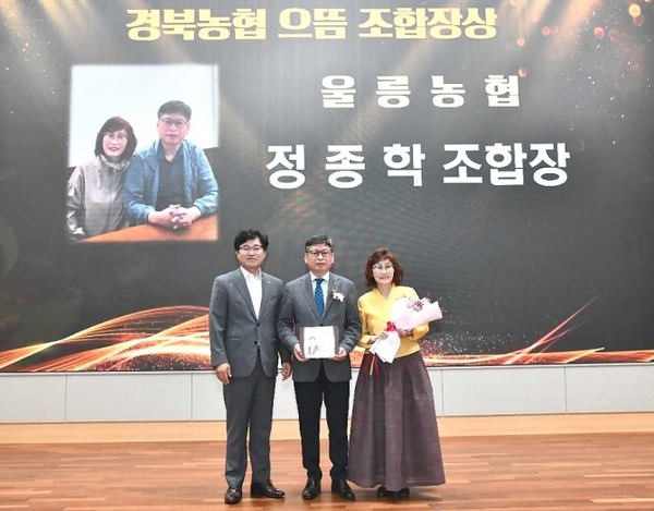 정종학 울릉농협 조합장이 지난 10일 농협중앙회 경북지역본부 에서 열린 10월 정례조회에서 최고 권위의 '경북농협 으뜸 조합장상'을 수상했다.