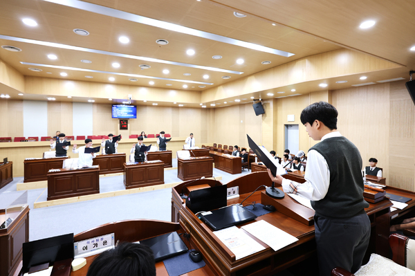 심상휴 의장은 환영사에서 “오늘 하루는 지역민의 목소리를 대변하는 의원이 되어 지방의회가 어떤 방식으로 주민들의 불편을 해소하고 의안을 결정하는지 이해할 수 있는 시간이 되길 바란다.”며, “의회에서의 경험이 학생 여러분이 장래에 훌륭한 사람이 되는 밑거름이 되고, 풀뿌리 민주주의 발전에 도움이 되기를 희망한다.”고 말했다.