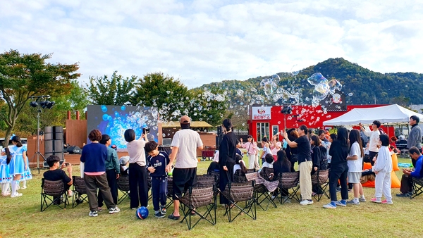 캠핑프로그램으로 ‘제로웨이스트 체험’을 위해 캠핑가족이 함께 참여하는 친환경 비누와 고체치약 만들기, 나만의 에코백 꾸미기 체험을 진행했고 가족들이 함께 행복한 시간을 즐길 수 있도록 ‘매직버블쇼’ 등으로 재미를 더해 주었다. 가을 정취를 느낄 수 있는 버스킹 공연도 아름다운 노래 소리로 감성을 한껏 고조시켜 가족간 힐링의 시간을 선사했다.