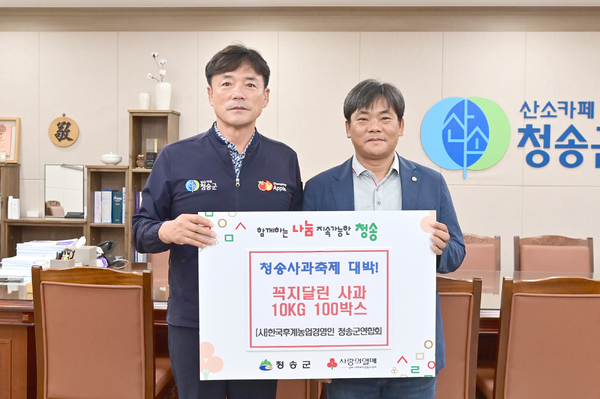 청송군연합회는 제18회 청송사과축제가 성공적으로 개최되기를 기원하는 바람으로 꼭지 무절단 사과를 기부하였으며, 기부된 사과는 청송보현재가노인복지센터를 통해 관내 취약계층 어르신 400가구에 전달될 예정이다.