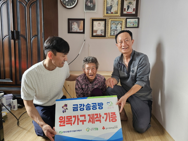 전달한 TV 수납장은 독거 어르신을 위해 금강송공방 회원들이 실측하고 한 달 동안의 작업 기간을 거쳐 공간 맞춤형으로 제작하였다.