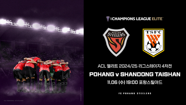 포항은 6일 오후 7시 포항스틸야드에서 산둥 타이산과 AFC 챔피언스리그 엘리트 2024/25(이하 ACLE) 리그스테이지 4차전 홈경기를 펼친다.