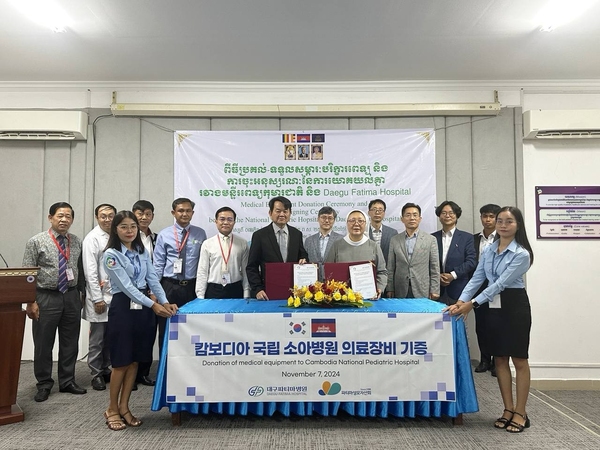 대구파티마병원은 지난 7일 캄보디아 프놈펜에 위치한 국립소아병원에 의료장비를 기증했다.