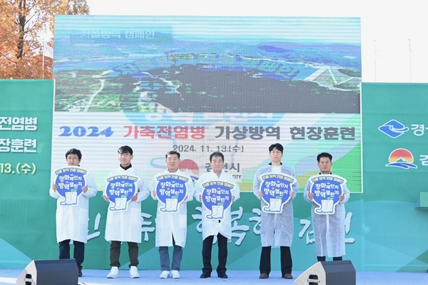 실제 상황에 맞춰 실시한 이번 훈련은 김천시 주관으로 해 경상북도, 가축위생방역지원본부, 축협, 경찰서, 소방서, 생산자단체 등 200여 명이 참석한 가운데 실시됐다.
