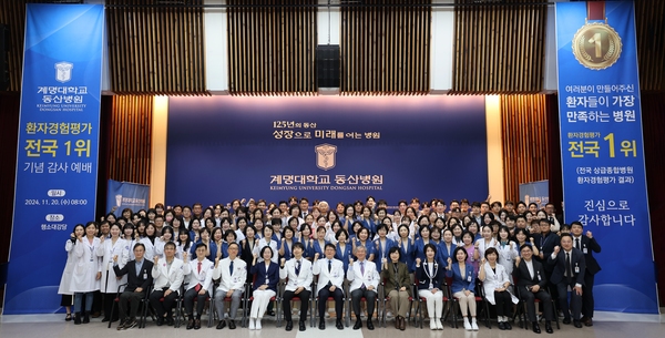 류영욱 동산병원장은 “의료계가 힘든 상황 속에서도 환자경험평가 전국 1위라는 좋은 성과를 얻게 돼 더 뜻깊고 환자중심문화 구축을 위해 노력한 결과가 빛을 발한 것 같다"며 "이번 성과가 앞으로의 100년을 위한 밀알이 되기를 기대한다”고 말했다.