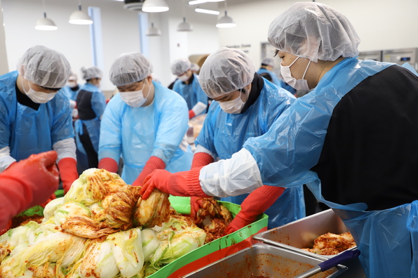 에코프로에 따르면 포항캠퍼스 임직원 60여명은 지난달 27일 포항캠퍼스 구내식당에서 770포기의 김치를 담가 포항지역 취약계층 150가구에게 전달했다.