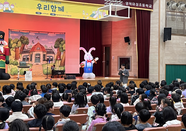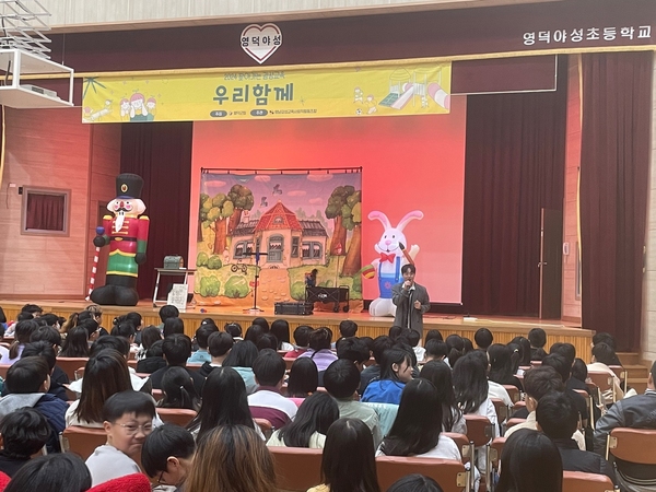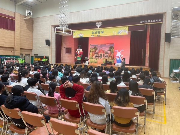 이번 인성교육은 관내 초등학생들의 건전한 학교생활을 위해 인성과 감성을 함께 성장시키는 것을 목적으로 전문교육기관과 연계해 ‘우리 함께’라는 교육용 연극을 영덕야성초등학교에서 2회, 영해초등학교에서 1회 공연했다.
