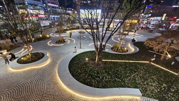 새 단장을 마친 광장은 이전 모습을 찾아볼 수 없을 만큼 바뀌었다. 지역에서 보기 드문 조경 소재로 포장된 바닥은 회색빛의 도시 속에서 이국적인 느낌을 주며, 바닥에 설치된 곡선 형태의 조명이 광장을 밝히고 있다.