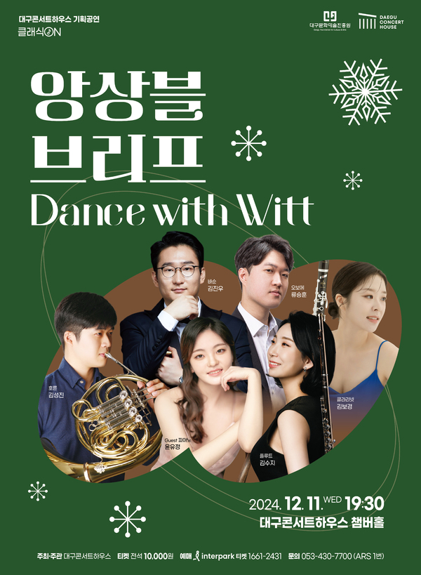 대구콘서트하우스는 오는 11일 오후 7시30분 대구콘서트하우스 챔버홀에서 12월 ‘클래식 ON(온)’ 프로그램으로 지역 연주단체인 앙상블 브리프의 'Dance with Witt' 공연을 개최한다.