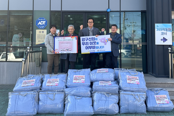 영덕군 강구신협 임문혁 이사장이 지난 2일 영덕복지재단 김명용 이사장을 만나 관내 어려운 이웃에게 전달해 달라며 이불을 기탁했다. 임문혁 이사장은 “지역 사회와 함께 성장하는 금융기관으로서 어려운 이웃들을 돌아보고 더불어 살아가는 지역 사회를 만드는데 이바지해 나가겠다”고 뜻을 전했다.