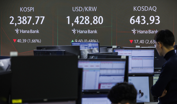 코스피 2380대로 급락 1년여만에 최저…코스닥 3%대 내려