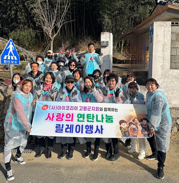 이날 기부 봉사에는 아이코리아 고령군지회 회원 20여명이 참여해 지역내 저소득층 3가구에 연탄 1000장을 직접 전달하며 온기를 나눴다.