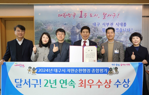 또 달서구는 환경오염과 화재발생 위험이 높은 폐건전지 수거 활성화를 위해 노력 중이다. (사)한국배터리순환자원협회 주관 ‘2024 폐건전지 수거 분야 ’에서도 대구시 지자체 중 유일하게 5년 연속 최고 등급인 S등급으로 평가받은 바 있다.