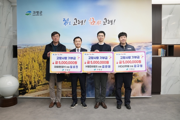 고령1일반산업단지관리공단의 ㈜다산주철 김규영대표, ㈜영진이엔지 김관현대표, 대화환경(주) 임성진대표가 30일 고령군을 방문해 각 500만원의 고령군 고향사랑기부금을 쾌척했다.
