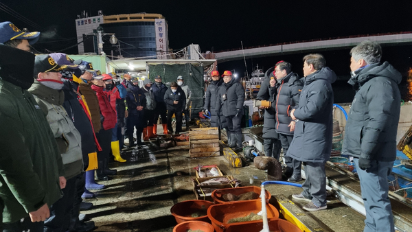 통상 11월부터 이듬해 5월까지는 어업인의 조업 활동이 증가하는 시기로, 김 군수는 최근 경북 동해안에서 조업 중 기관 고장, 부유물 감김, 충돌·화재 등의 안전사고 위험이 늘어남에 따라 어업인들의 안전 조업을 격려하고 영덕군의 다목적 어업지도선 ‘영덕누리호’에 승선해 안전 조업을 지도·점검했다.