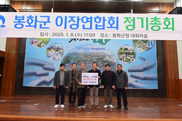 봉화군 이장연합회는 지난 8일 봉화군청 대회의실에서 열린 이장연합회 총회에서 사랑의 열매 이웃돕기 성금 200만원을 전달했다. 이번 정기총회는 박현국 봉화군수와 박창욱 도의원 및 도기열 이장연합회장 등 봉화군 이장연합 임원들이 참석한 가운데 진행됐다.