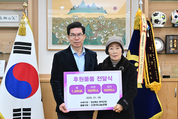 이날 한국나눔연맹의 이양자 지부장과 최충열 부지부장은 설 명절을 앞두고 소외된 이웃에게 희망을 나누기 위해 김광열 영덕군수를 만나 성품을 전달했다.