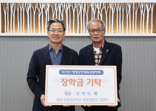 영양군은 지난 13일 화천‧무창초등학교 김연학 총동창회장이 작년에 이어 올해도 영양군인재육성장학금으로 100만원을 기탁했다고 밝혔다. 이날 기탁식에 참석한 화천‧무창초등학교 김연학 총동창회장은 “지역 학생들이 학업에 전념할 수 있는 발판 마련에 도움이 되고자 작년에 이어 올해도 영양군인재육성장학금 기탁에 동참하게 됐다”라며 “경제적 어려움 속에서도 꿈을 잃지 않고 전념하는 학생들에게 도움이 되길 바란다”라고 밝혔다.