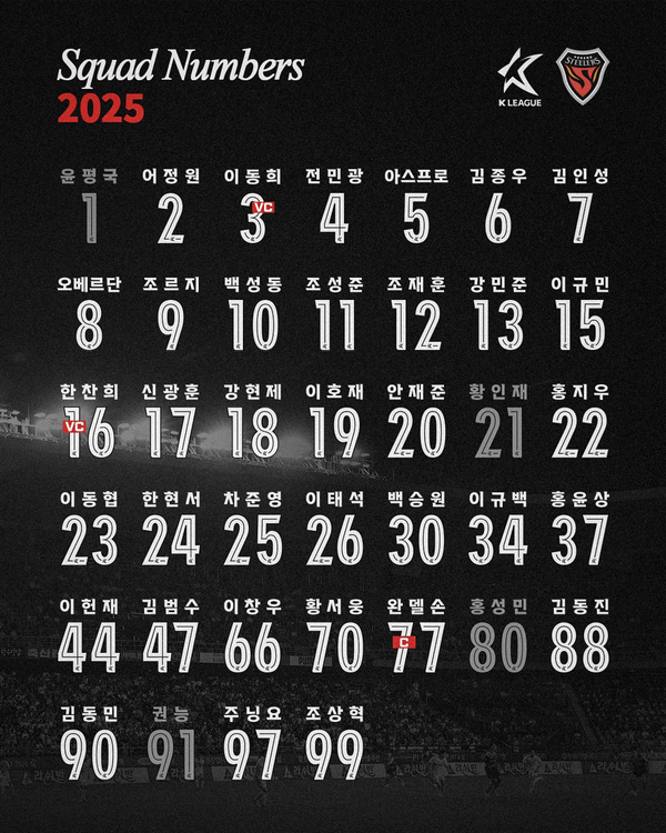 포항스틸러스는 선수단 39명의 배번을 확정했다.