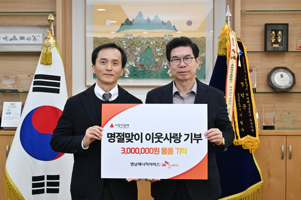 ▲ 영남에너지서비스(주) 이명헌 대표(왼쪽)가 김광열 영덕군수를 만나 성품을 전달하고 있다. 영덕군 제공 영남에너지서비스(주) 경영지원실장 이명헌 외 임직원들이 지난 23일 설 명절을 맞아 지역의 취약계층을 지원하기 위해 300만 원 상당의 라면 210박스를 영덕군에 기탁했다. 포항시에서 연료용 가스를 제조하고 공급하는 영남에너지서비스는 지난 추석 명절에도 어려운 이웃을 돕기 위해 영덕군에 식료품을 기부하는 등 지속적으로 지역사회와의 상생을 위한 다양한 활동을 펼쳐왔다. 영덕군은 기탁받은 식료품은 영덕복지재단을 통해 관내 어려운 이웃들에게 전달할 계획이다. 박기순 기자 rltns1120@hanmail.net 다른기사 보기 저작권자 © 대경일보 무단전재 및 재배포 금지 당신만 안 본 뉴스 李대통령 “성과는 충분”… 재계 “국내 투자 확대하겠다” 신천지자원봉사단 대구지부, 대명역·관문시장 환경정화활동 실시 [부서탐방] 지역발전 대동맥...사통 팔달 교통망 확충 앞장 ‘구미시 도로 철도과’ 튀르키예서 독일인 일가족 숨져… 길거리 음식인가, 호텔 오염인가 [단독] 수능 끝났는데도 1시간가량 ‘대기’… 포항 두호고 수험생들 불만 ‘AI 버블’ 경계·美 금리 불확실성… 코스피 4000선 무너졌다 유재춘 이사장, 국회에 새마을금고 규제 완화 건의 李대통령 “성과는 충분”… 재계 “국내 투자 확대하겠다” 댓글삭제 삭제한 댓글은 다시 복구할 수 없습니다. 그래도 삭제하시겠습니까? 비밀번호 닫기 기사 댓글 0 댓글 접기 로그인 후 이용 가능합니다. 댓글 내용입력 비회원 로그인 이름 비밀번호 댓글 내용입력 댓글쓰기 계정을 선택하시면 로그인·계정인증을 통해 댓글을 남기실 수 있습니다. 회원 로그인 비회원 글쓰기 이름 비밀번호 자동등록방지 로그인 옵션 창닫기 주요기사 [이철우 칼럼] 행복을 유예하지 마라 [역사탐방] 일본서 꽃 피운 조선의 음식문화 해병특검, 공수처장·차장 기소··· 국회 위증 사건 방치 혐의 [속보] '6000만원 수수 혐의' 노웅래 전 의원 1심 무죄 與, 대미투자특별법 발의··· 美 관세 11월1일 소급 적용 與, 퇴직 대법관 수임 제한·법원행정처 폐지 추진… 법원 “사법권 침해” 반발