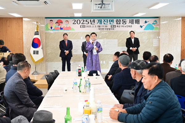 이주영 개진면장은 “바쁜 일정 속에서도 합동 세배에 참석해 주신 기관 단체장님들께 감사드리며, 이런 뜻깊은 자리를 만든 개진면 이장협의회와 떡국을 정성껏 준비해 주신 개진면 새마을 부녀회 회원님들께 깊은 감사를 드린다"며 "개진면이 더 따듯하고 행복한 지역사회로 거듭날 수 있도록 최선을 다하겠다”고 말했다.