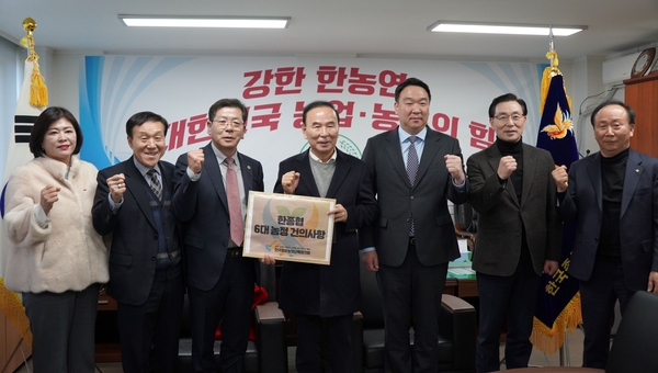 한종협은 △저율관세 활용 농산물 수급정책 개선 △정부발행 상품권 농촌 사용처 현실화 △농업부문 조세감면 일몰기한 연장 △무기질비료 가격보조 및 수급 안정 △후계농업경영인 육성자금 확보 △사료구매자금 지원 규모 확대 등 6대 농정 건의사항을 전달했다.
