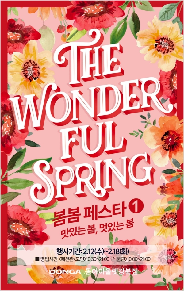 또한 12일부터 18일 행사기간 中 진행되는 주요 지점 대표 테마/층별 행사들을 살펴보면, 먼저 쇼핑점/수성점/강북점에서 함께 진행되는 행사로 인디고키즈·로엠걸즈·밀리밤·애니바디 등이 참여하는 봄봄 페스타 행사 등을 진행한다.