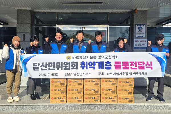 최희찬 달산면장은 “꾸준한 봉사활동으로 지역사랑을 실천하는 마음에 감사드린다”며, “단순한 물품 전달을 넘어 지역사회에 온기가 전달되는 계기가 되도록 힘쓰겠다”고 답례했다.