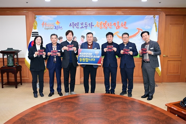 김천시 복지환경국은 25일, 김천상무FC의 2025년 K리그 승리를 기원하며 티켓북 구매 릴레이 참여 인증식을 개최했다.