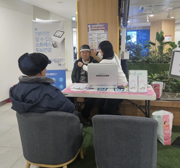 정신건강분석기는 뇌파와 맥파의 생체신호를 측정 및 분석해 종합결과를 알기 쉽게 보여주는 정신건강측정 의료기기로, 1분 동안 측정해 스트레스와 두뇌건강 확인이 가능한 장비다.