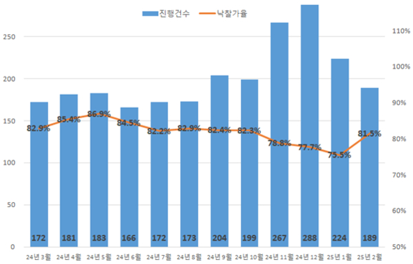 10일 지지옥션이 발표한 ‘2025년 2월 경매동향보고서’에 따르면, 대구는 6개월 만에 아파트 낙찰가율 상승을 기록하며 지역 시장의 회복세를 나타냈다.