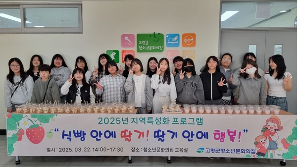 고령군 청소년문화의집은 지난 22일 지역 특성화 프로그램 '식빵 안에 딸기! 딸기 안에 행복!'이라는 주제로 지역특산물인 신선한 딸기를 활용한 딸기 돌돌말이 샌드위치와 딸기라떼를 만들어 청소년문화의집을 이용하는 청소년들에게 나눔 활동을 하는 뜻깊은 시간을 펼쳤다.
