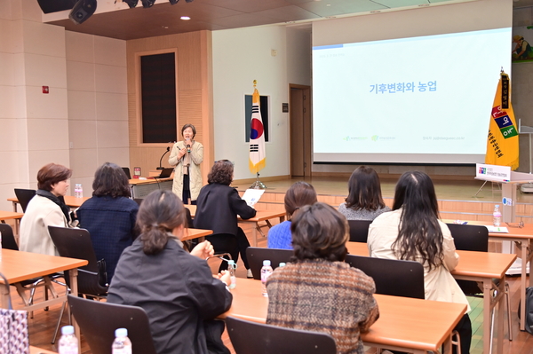 이번 교육은 (사)한국여성농업인 청송군연합회 임원과 회원 50여 명을 대상으로 진행되었으며, 1부는 ‘기후 위기와 농업’(대구환경교육센터 사무처장 정숙자), 2부는 ‘여성농업인 육성 정책의 이해와 여성 리더의 역할’(행복의성지원센터 前센터장 유정규)을 주제로 구성됐다.