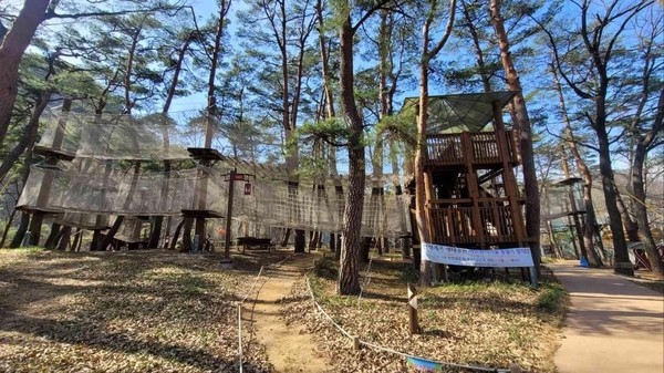 옥계계곡과 산성계곡 사이의 수려한 자연경관과 함께 모험을 즐기는 ‘산성계곡 생태공원 어드벤처’가 겨울철 정기휴장 동안 안전 점검과 시설보수를 마치고 다음달 1일을 재개장한다.