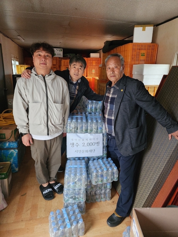 시민문화재단과 포항희망포럼은 산불 피해 주민을 돕기 위해 영덕군 지품면 마을에 생수 2,000병을 전달했다.