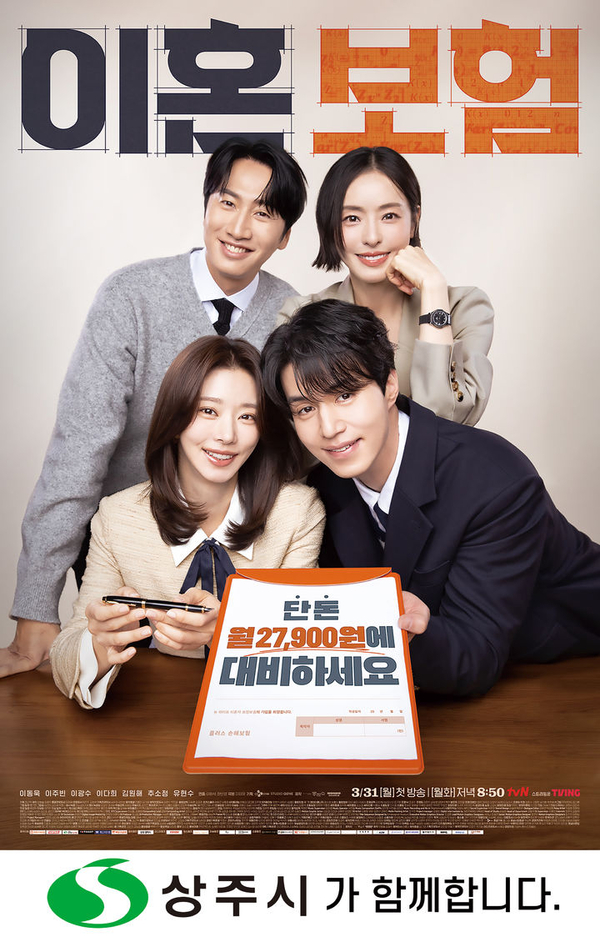 지난 3월 31일 첫 방송된 tvN 드라마‘이혼보험’은 이동욱(노기준 역)과 이주빈(강한들 역)이 주연을 맡은 오피스 로맨스 코미디로, 최고의 브레인만 모여있는 플러스 손해보험 혁신상품개발팀에서 이혼보험 상품을 선보이며 벌어지는 이야기를 그린다. 인기 배우들의 명품 연기와 이원석 감독의 감각적인 연출, 이태윤 작가의 흥미로운 스토리가 더해져 시청자들의 주목을 받고 있다.