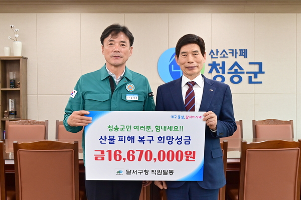 ㈜영덕해상케이블카 노성모 대표는 지난 4일, 초대형 산불로 큰 피해를 입은 영덕 군민들을 돕기 위해 영덕군의회 김성호 의장을 통해 영덕군에 성금 1천만 원을 기탁했다. 노성모 대표는 “산불로 삶의 터전을 잃은 주민들게 조금이나마 힘이 됐으면 한다”라며, “피해 주민들이 하루 빨리 일상으로 돌아갈 수 있기를 바란다”고 말했다.