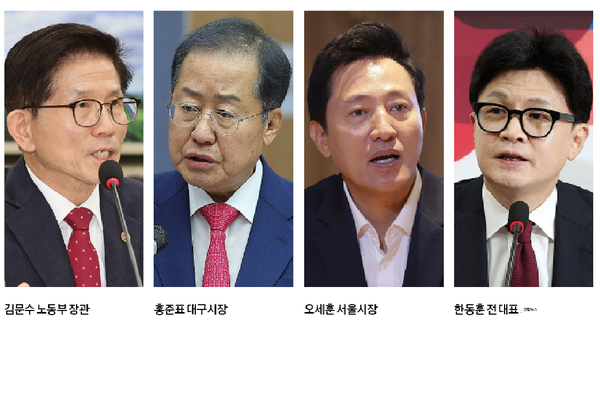 여론조사상 국민의힘 '빅4'로 분류되는 김문수 고용노동부 장관, 오세훈 서울시장, 홍준표 대구시장, 한동훈 전 대표를 비롯해 안철수 의원, 유승민 전 의원 등이 본격 대권 행보에 나설 것으로 전망된다.