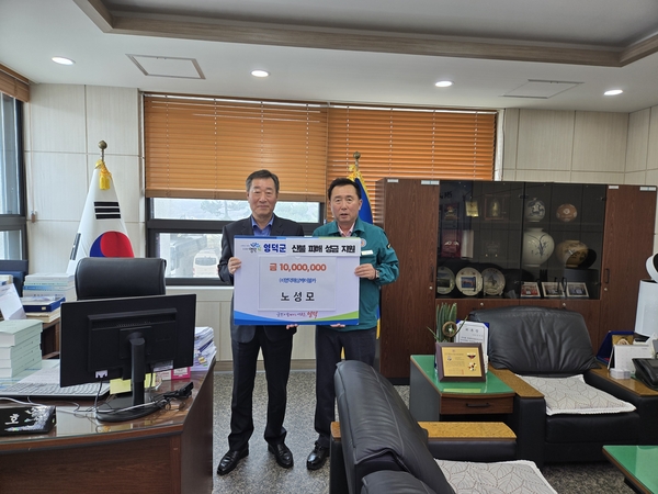 ▲ ㈜영덕해상케이블카 노성모 대표 ㈜영덕해상케이블카 노성모 대표는 지난 4일, 초대형 산불로 큰 피해를 입은 영덕 군민들을 돕기 위해 영덕군의회 김성호 의장을 통해 영덕군에 성금 1천만 원을 기탁했다. 노성모 대표는 “산불로 삶의 터전을 잃은 주민들게 조금이나마 힘이 됐으면 한다”라며, “피해 주민들이 하루 빨리 일상으로 돌아갈 수 있기를 바란다”고 말했다.