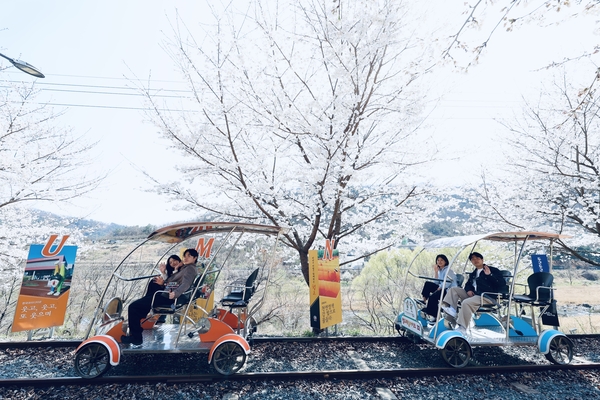 김하수 청도군수는 “봄이 수놓은 수려한 자연경관을 배경으로 ‘녹슨 철길 위, 만개한 벚꽃 아래’ 레일바이크를 타며 봄날의 정취를 만끽하시고 소중한 추억 남기시길 희망한다”고 말했다.