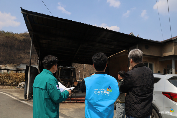 이번 봉사는 사회복지법인 따뜻한 동행이 산불 피해를 입은 경로당 4곳을 직접 방문해 전소 2개소, 부분훼손 2개소의 피해 상황을 확인하고 이 중 부분 훼손된 경로당 2곳에 대해 ‘드림하우스’라는 사업명으로 총 3천만원 상당의 개보수를 지원할 예정이다.