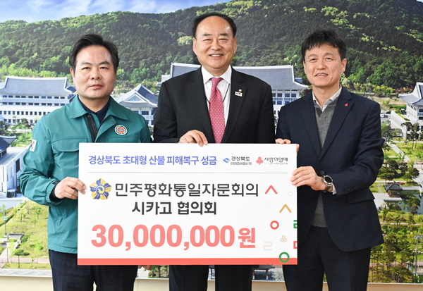 성금 전달을 위해 경북도를 방문한 김길영 시카고 평통회장은 “비록 이역만리 타국에서 생활하고 있지만 경북에서 발생한 초유의 산불로 피해 지역 동포들이 어려움에 처해 있다는 소식을 접하고 너무 가슴이 아팠다. 하루속히 피해복구가 이뤄져 주민들이 일상으로 복귀할 수 있기를 기원한다”고 말했다.