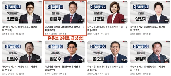 국민의힘 후보경선 비전대회 유튜브 영상 조회수 돌풍