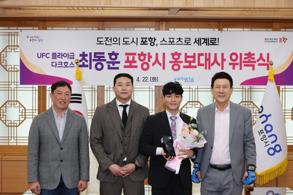 포항시는 22일 세계적인 종합격투기 무대인 UFC에서 활약 중인 플라이급 파이터 최동훈 선수를 포항시 홍보대사로 위촉했다.