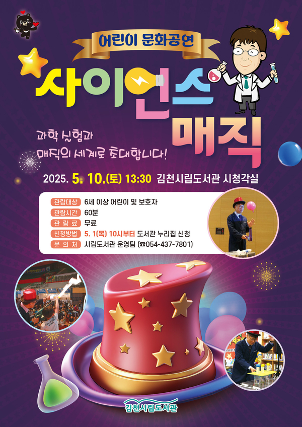 사이언스 매직은 일반 마술 공연과는 달리 화려한 과학실험과 흥미로운 스토리 전개를 통해 관객들과 함께 배우며 즐기는 소통형 공연으로 부메랑의 원리, 초저온의 세계, 액체질소 화산 폭발 등의 깜짝 놀랄 만한 실험을 통해 어린이들에게 즐거움과 재미, 과학지식을 모두 전해줄 것으로 기대된다.