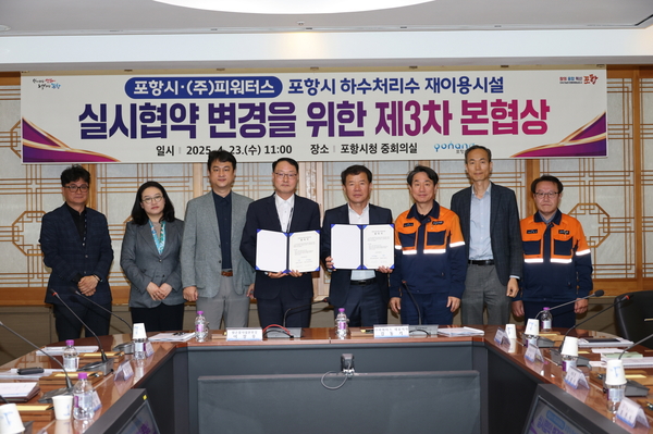 포항시가 4개 민간투자사업 운영 과정에서 총 441억원의 예산을 절감하며, 23일 하수처리수 재이용시설 운영과 관련한 제3차 본협상 합의서에 최종 서명했다.